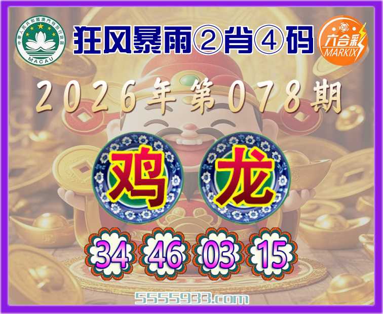 078期:《狂风暴雨》 ②肖④码【鸡龙】【34.46.03.15】开:鸡46准上榜高手
