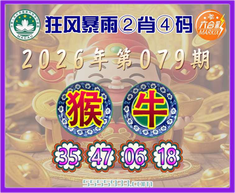 079期:《狂风暴雨》 ②肖④码【猴牛】【35.47.06.18】开:猴35准上榜高手