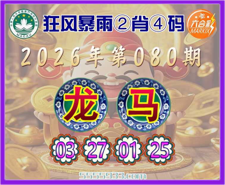 080期:《狂风暴雨》 ②肖④码【龙马】【03.27.01.25】开:龙03准上榜高手