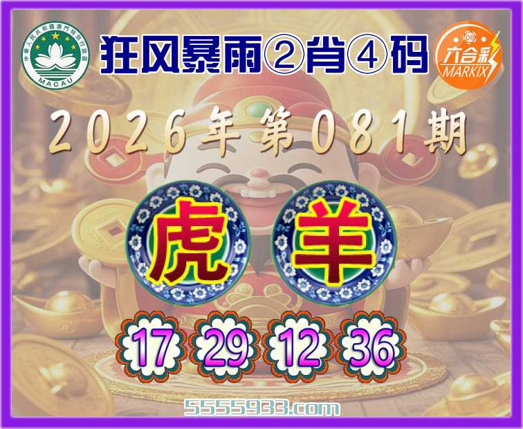 081期:《狂风暴雨》 ②肖④码【虎羊】【17.29.12.36】开:虎17准上榜高手