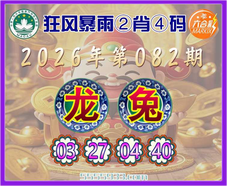 082期:《狂风暴雨》 ②肖④码【龙兔】【03.27.04.40】开:龙27准上榜高手